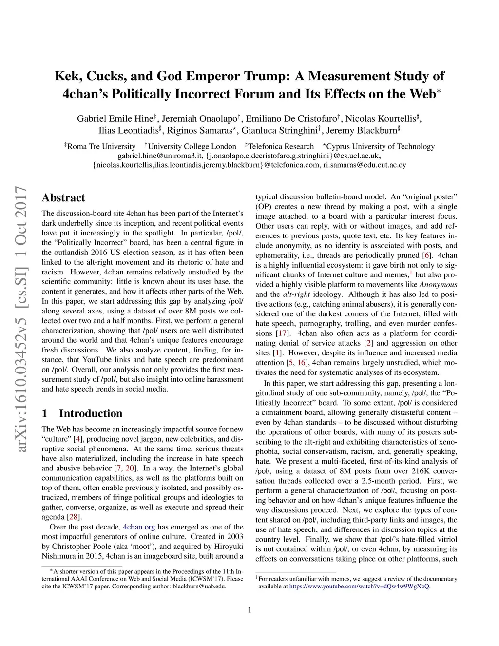 Politically Incorrect Forum and Its Effects on the Web