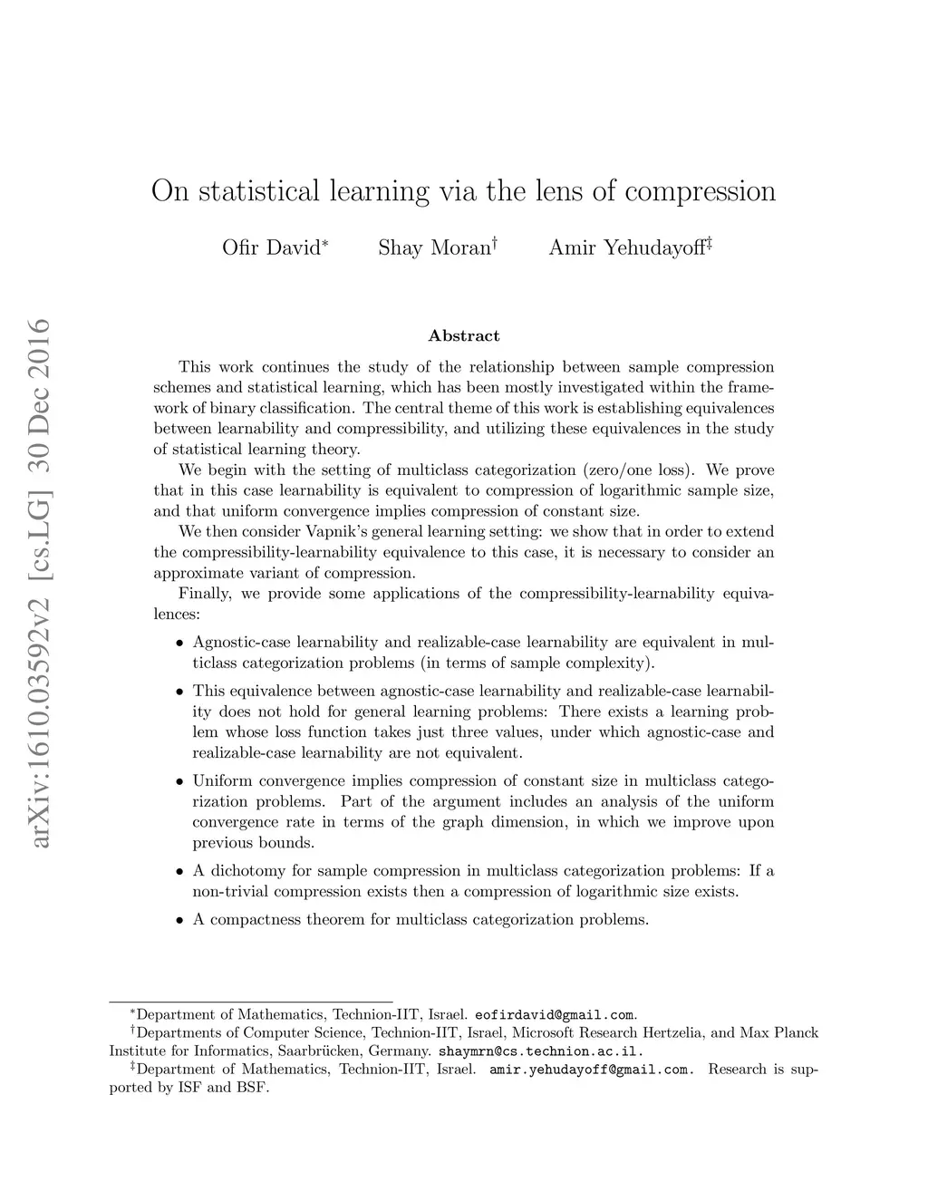 On statistical learning via the lens of compression