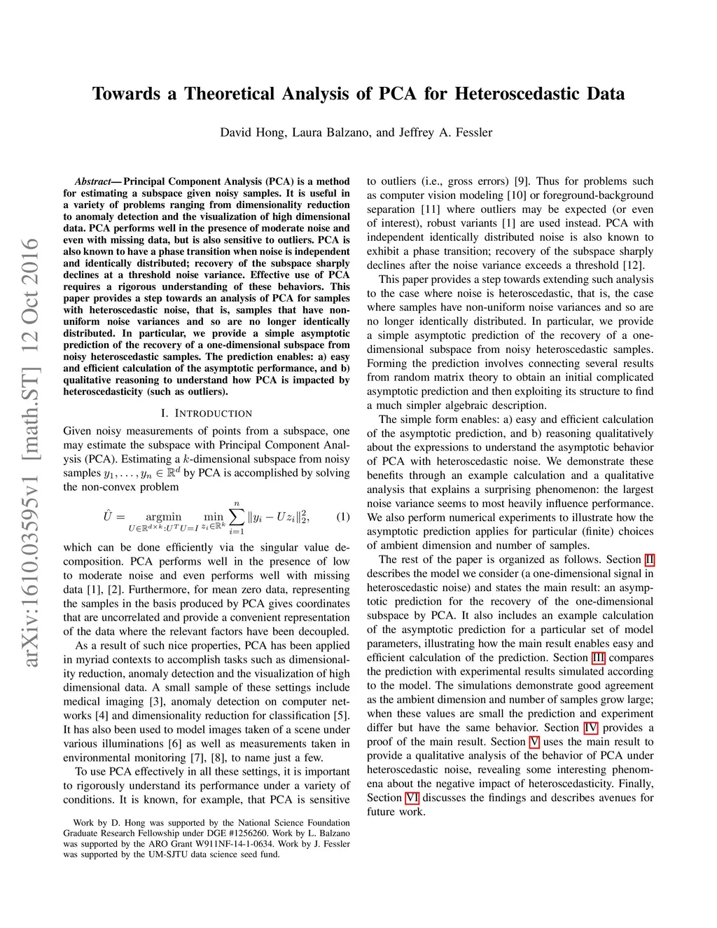 Towards a Theoretical Analysis of PCA for Heteroscedastic Data