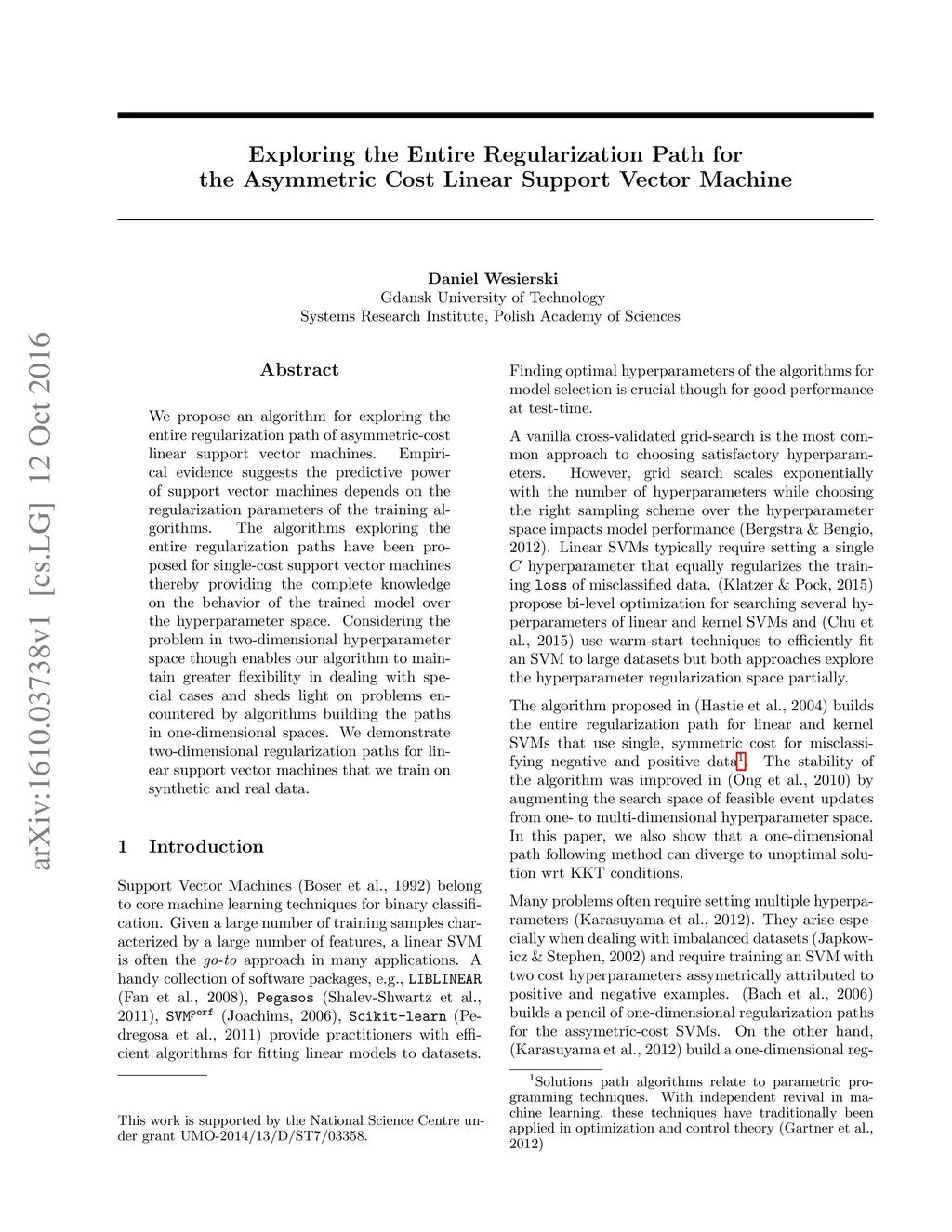 We propose an algorithm for exploring the entire regularization path of asymmetric-cost linear support vector machines. Empirical evidence suggests the predictive power of support vector machines depends on the regularization parameters of the training algorithms. The algorithms exploring the entire regularization paths have been proposed for single-cost support vector machines thereby providing the complete knowledge on the behavior of the trained model over the hyperparameter space. Considering the problem in two-dimensional hyperparameter space though enables our algorithm to maintain greater flexibility in dealing with special cases and sheds light on problems encountered by algorithms building the paths in one-dimensional spaces. We demonstrate two-dimensional regularization paths for linear support vector machines that we train on synthetic and real data.