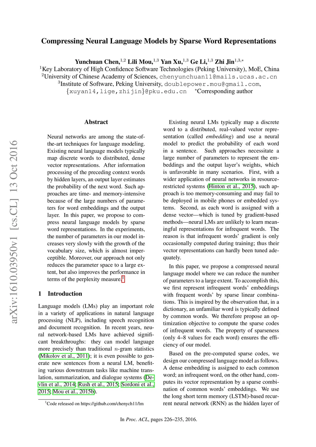Compressing Neural Language Models by Sparse Word Representations