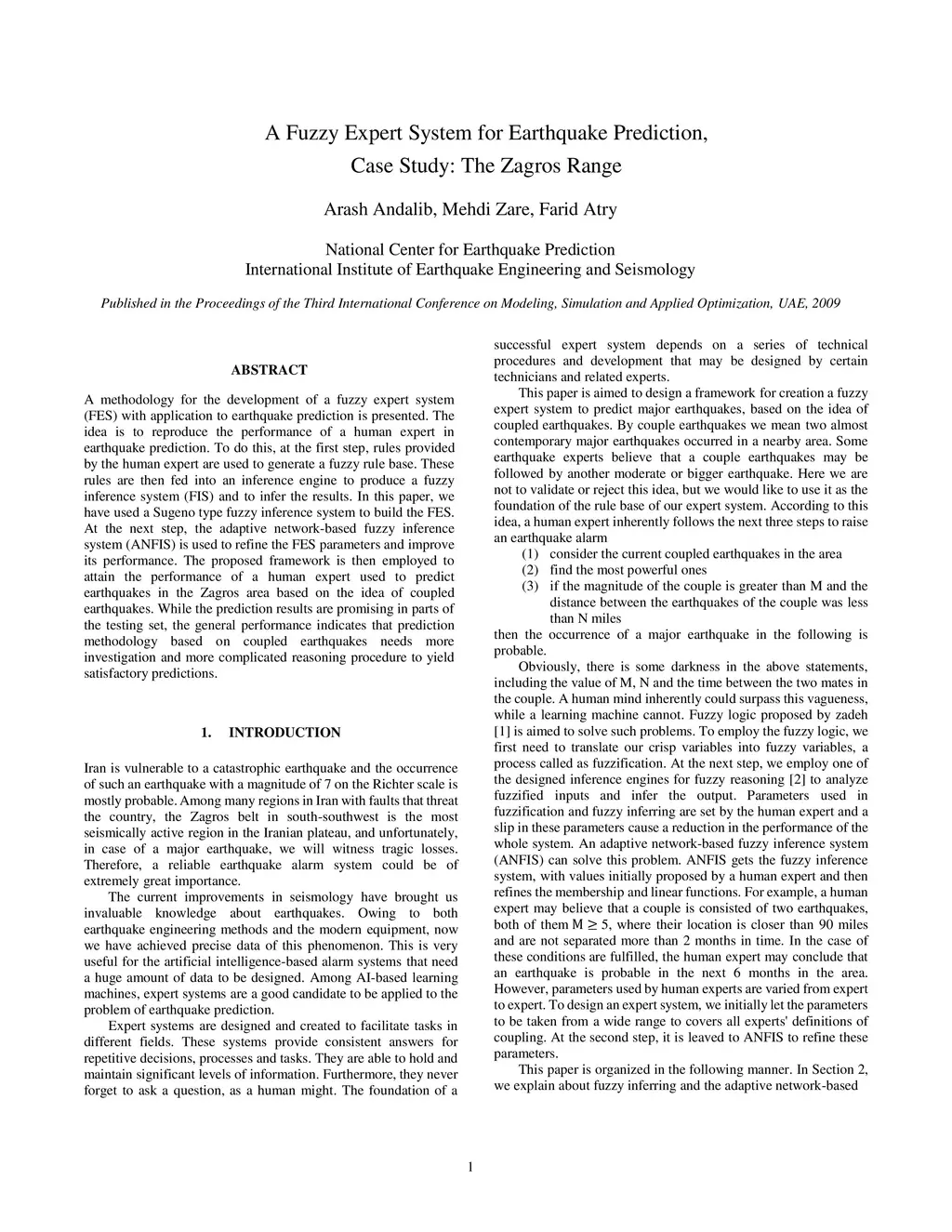 A fuzzy expert system for earthquake prediction, case study: the Zagros