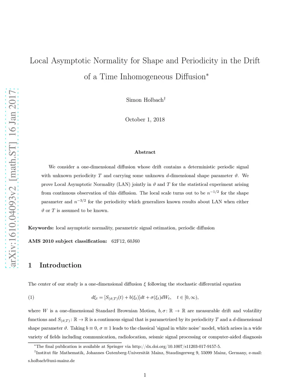 Local Asymptotic Normality for Shape and Periodicity in the Drift of a