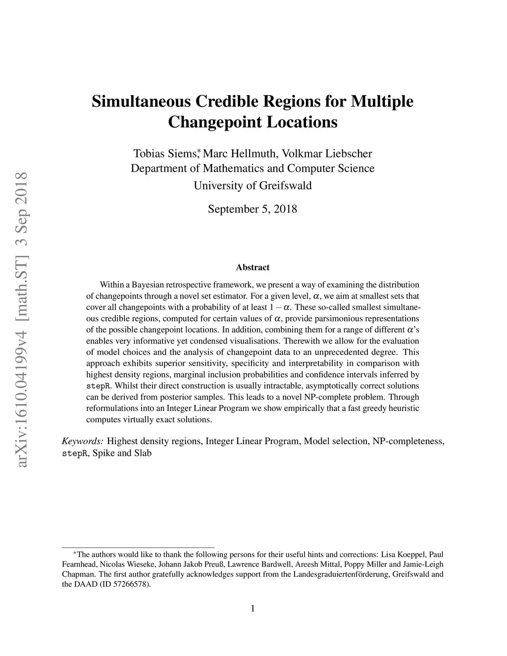 Within a Bayesian retrospective framework, we present a way of examining the distribution of \cps through a novel set estimator. For a given level, , we aim at smallest sets that cover all \cps with a probability of at least . These so-called smallest simultaneous credible regions, computed for certain values of , provide parsimonious representations of the possible \cp locations. In addition, combining them for a range of different 's enables very informative yet condensed visualisations. Therewith we allow for the evaluation of model choices and the analysis of \cp data to an unprecedented degree. This approach exhibits superior sensitivity, specificity and interpretability in comparison with highest density regions, marginal inclusion probabilities and confidence intervals inferred by \stepR. Whilst their direct construction is usually intractable, asymptotically correct solutions can be derived from posterior samples. This leads to a novel NP-complete problem. Through reformulations into an Integer Linear Program we show empirically that a fast greedy heuristic computes virtually exact solutions.