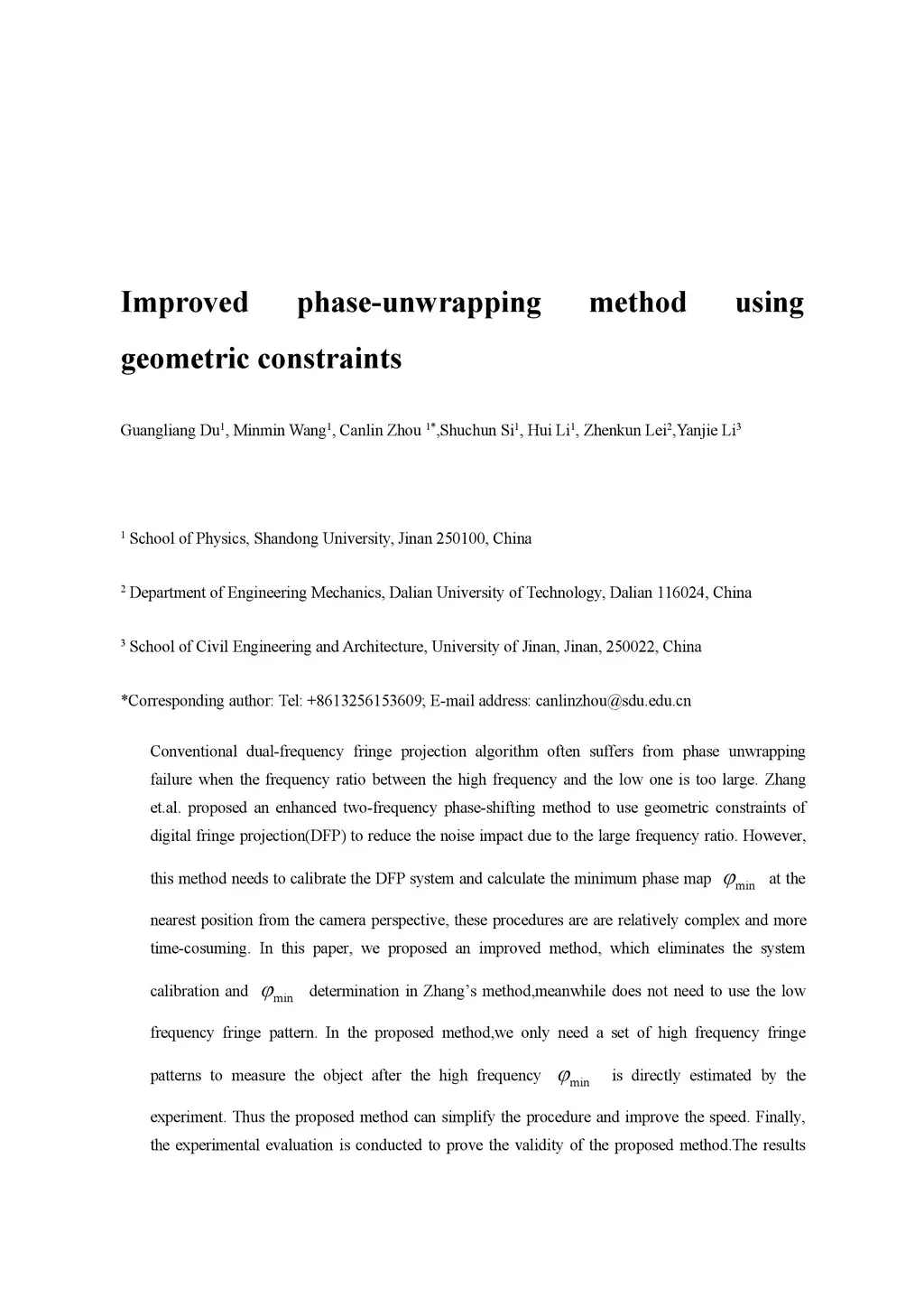 Improved phase-unwrapping method using geometric constraints