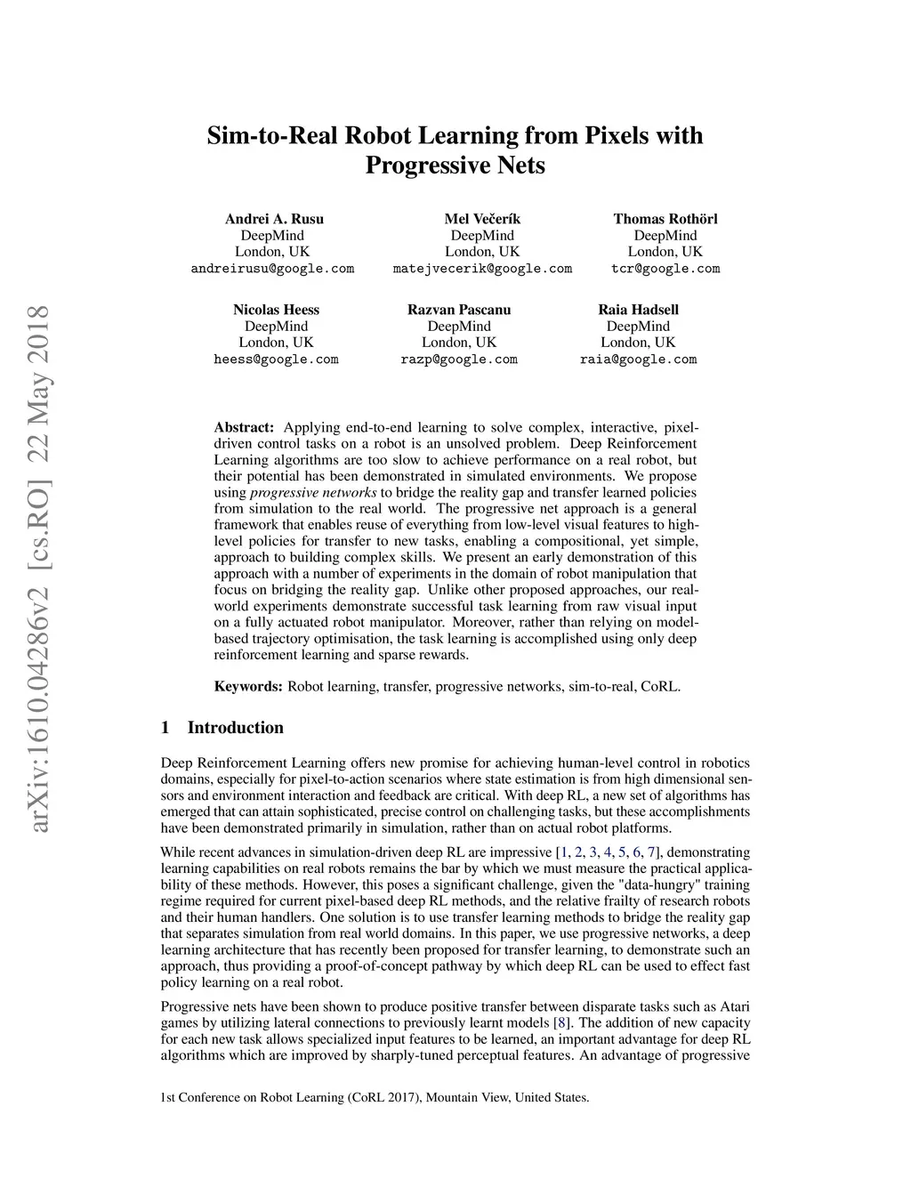 Sim-to-Real Robot Learning from Pixels with Progressive Nets