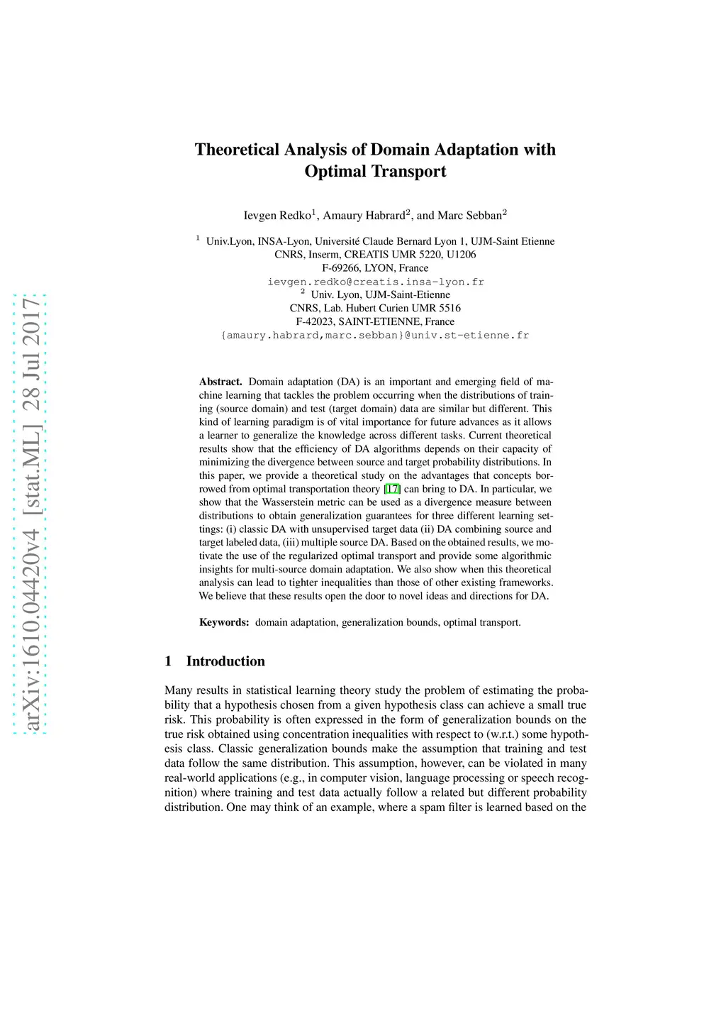 Theoretical Analysis of Domain Adaptation with Optimal Transport