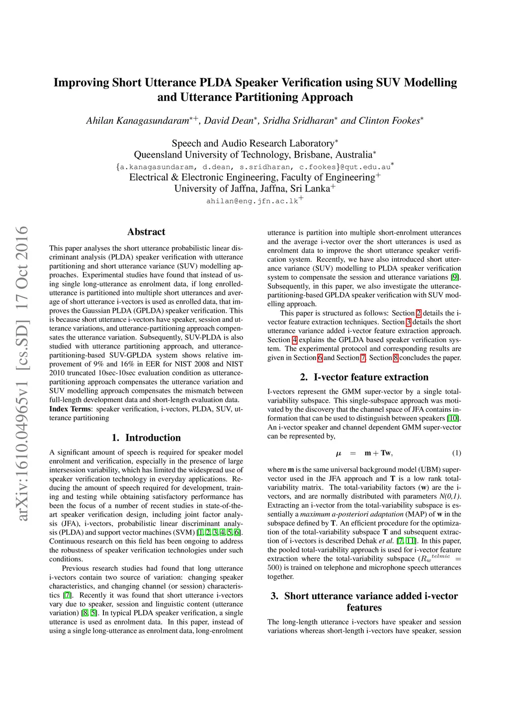 Improving Short Utterance PLDA Speaker Verification using SUV Modelling