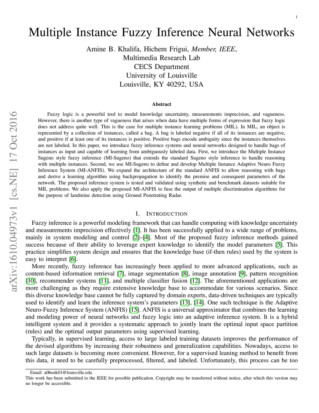 Multiple Instance Fuzzy Inference Neural Networks