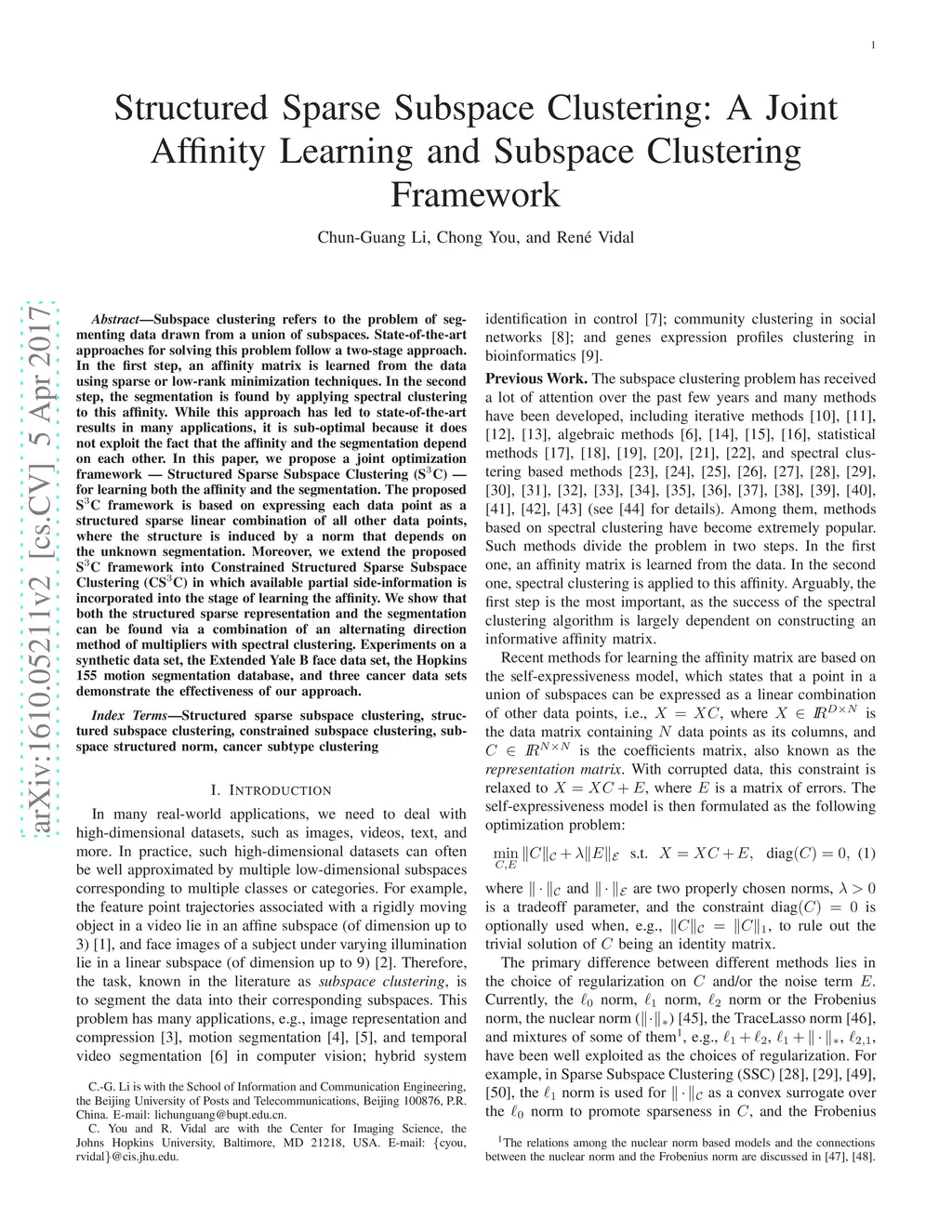 Subspace Clustering Framework