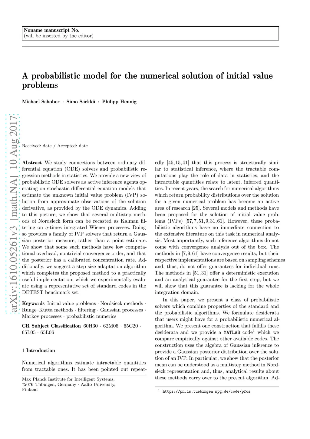 Like many numerical methods, solvers for initial value problems (IVPs) on ordinary differential equations estimate an analytically intractable quantity, using the results of tractable computations as inputs. This structure is closely connected to the notion of inference on latent variables in statistics. We describe a class of algorithms that formulate the solution to an IVP as inference on a latent path that is a draw from a Gaussian process probability measure (or equivalently, the solution of a linear stochastic differential equation). We then show that certain members of this class are connected precisely to generalized linear methods for ODEs, a number of Runge--Kutta methods, and Nordsieck methods. This probabilistic formulation of classic methods is valuable in two ways: analytically, it highlights implicit prior assumptions favoring certain approximate solutions to the IVP over others, and gives a precise meaning to the old observation that these methods act like filters. Practically, it endows the classic solvers with `docking points' for notions of uncertainty and prior information about the initial value, the value of the ODE itself, and the solution of the problem.