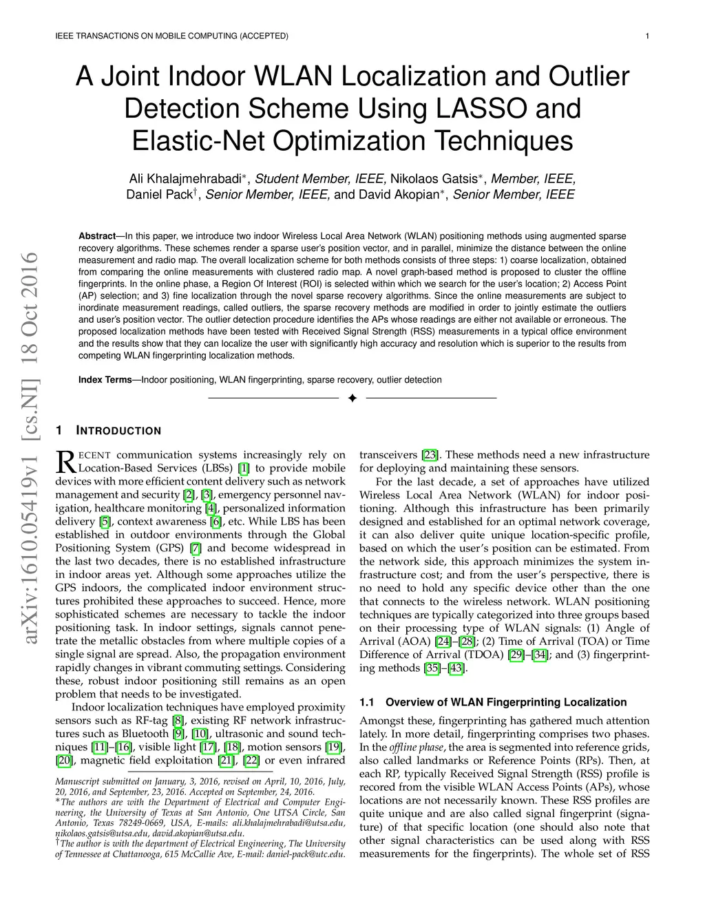 A Joint Indoor WLAN Localization and Outlier Detection Scheme Using