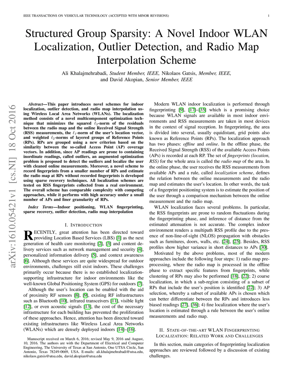 Structured Group Sparsity: A Novel Indoor WLAN Localization, Outlier