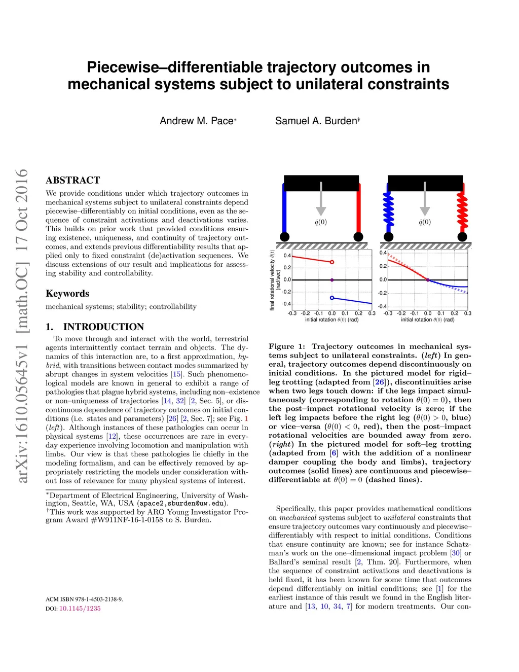 Piecewise-differentiable trajectory outcomes in mechanical systems