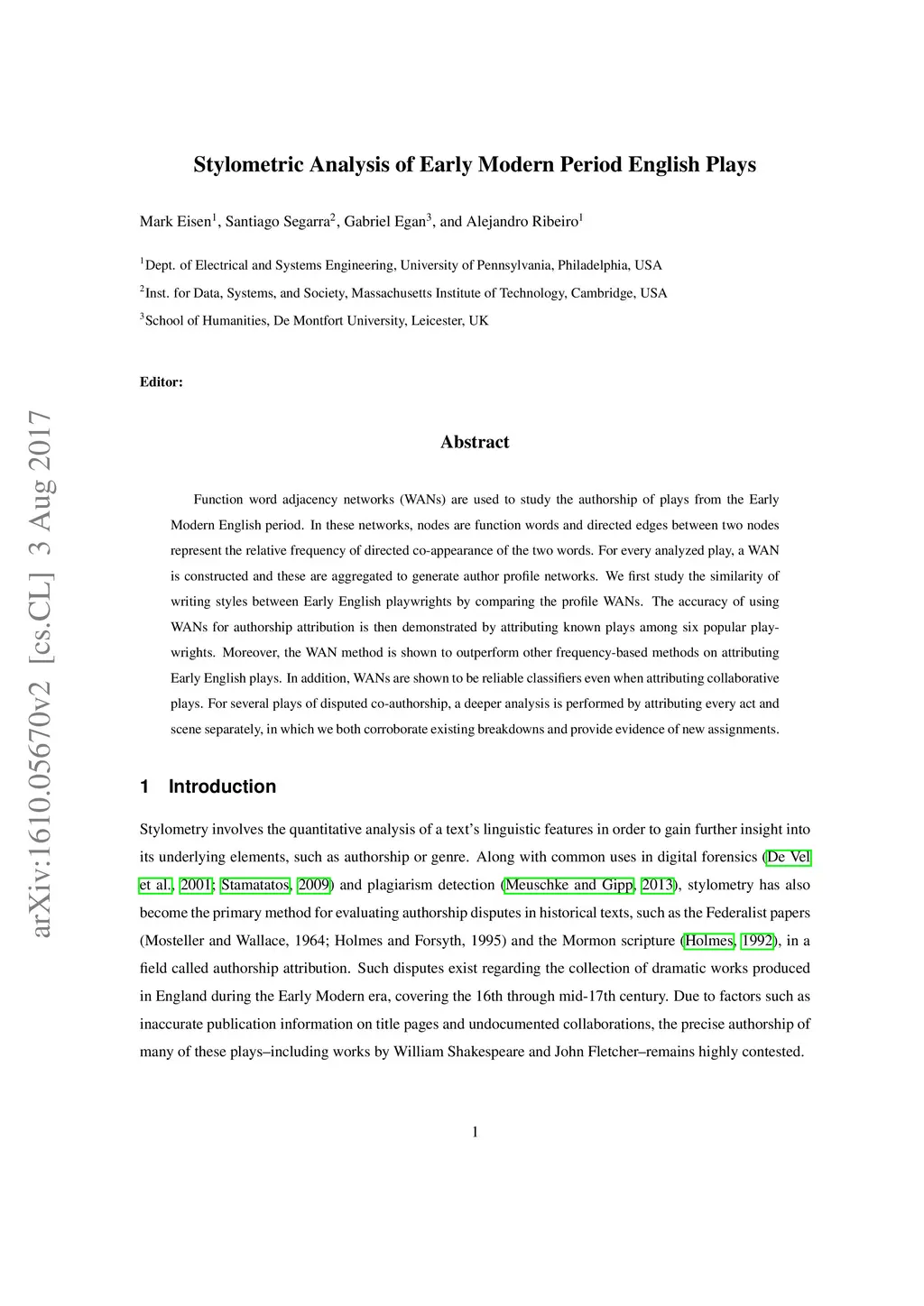 Function word adjacency networks (WANs) are used to study the authorship of plays from the Early Modern English period. In these networks, nodes are function words and directed edges between two nodes represent the relative frequency of directed co-appearance of the two words. For every analyzed play, a WAN is constructed and these are aggregated to generate author profile networks. We first study the similarity of writing styles between Early English playwrights by comparing the profile WANs. The accuracy of using WANs for authorship attribution is then demonstrated by attributing known plays among six popular playwrights. Moreover, the WAN method is shown to outperform other frequency-based methods on attributing Early English plays. In addition, WANs are shown to be reliable classifiers even when attributing collaborative plays. For several plays of disputed co-authorship, a deeper analysis is performed by attributing every act and scene separately, in which we both corroborate existing breakdowns and provide evidence of new assignments.