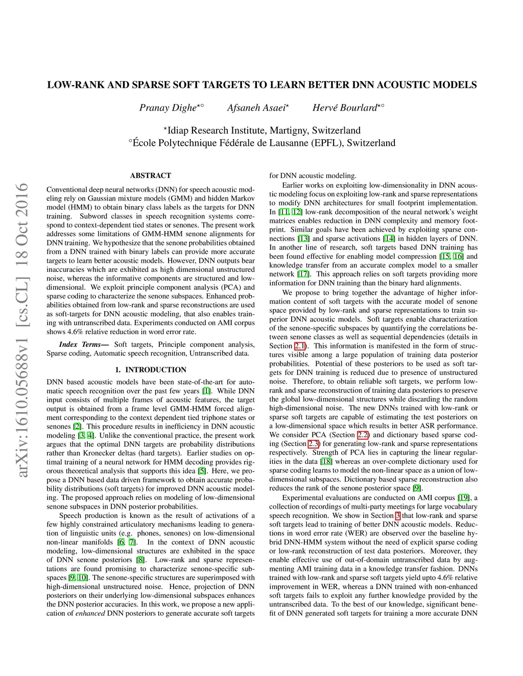 Low-rank and Sparse Soft Targets to Learn Better DNN Acoustic Models