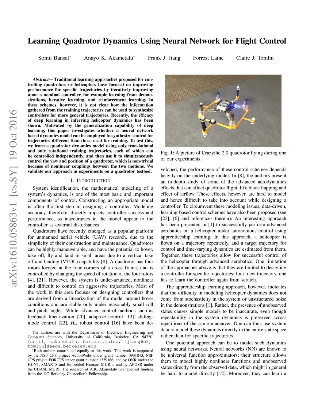Learning Quadrotor Dynamics Using Neural Network for Flight Control