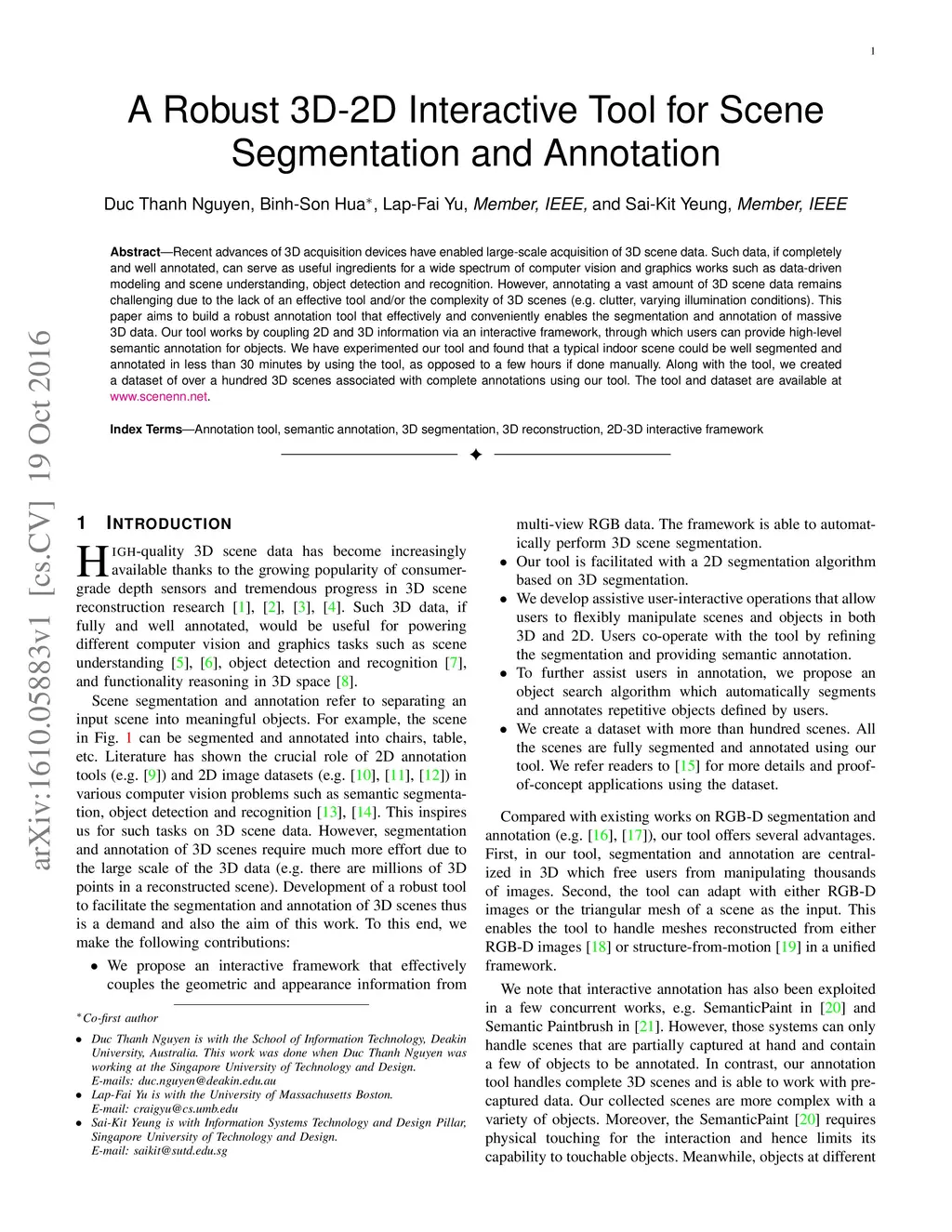 A Robust 3D-2D Interactive Tool for Scene Segmentation and Annotation