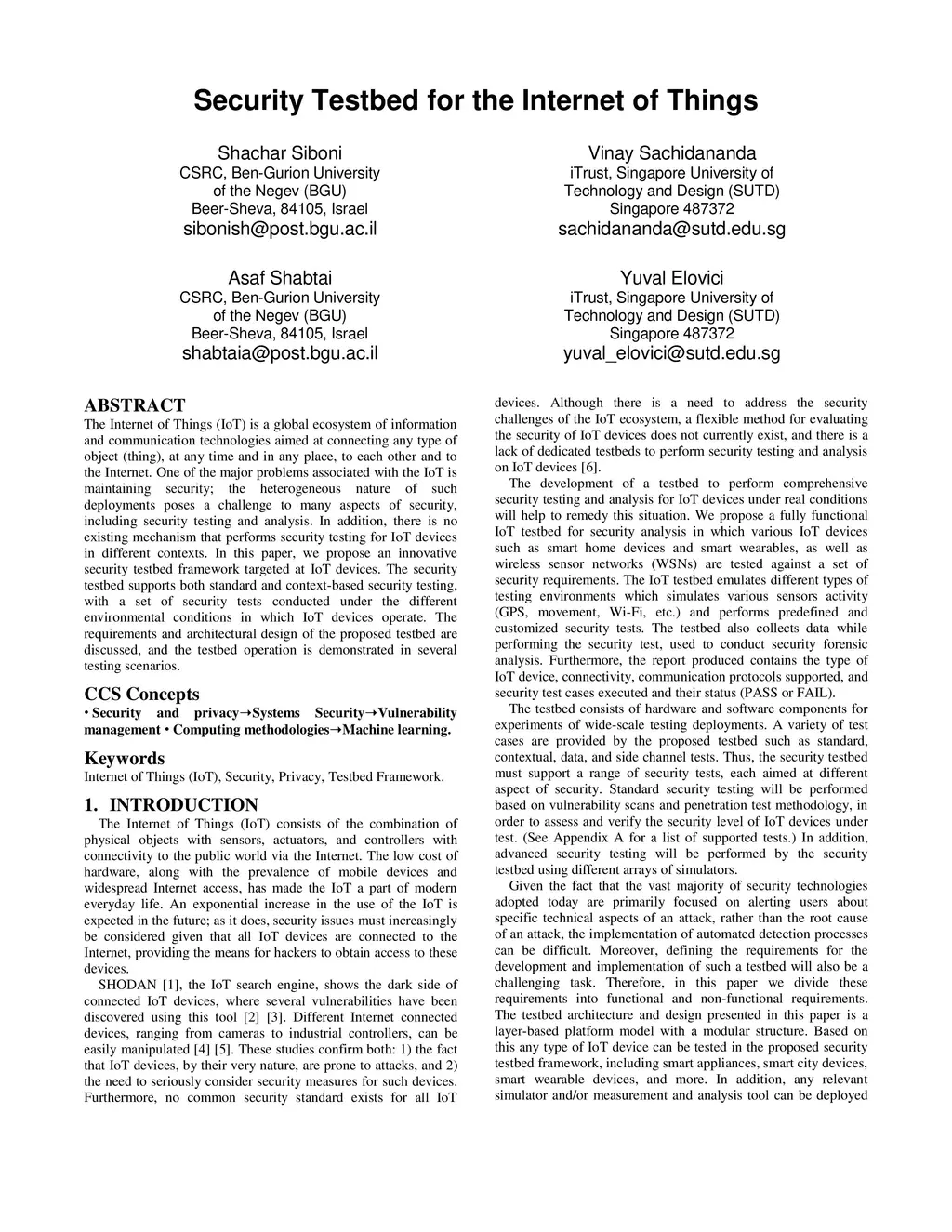 Security Testbed for the Internet of Things