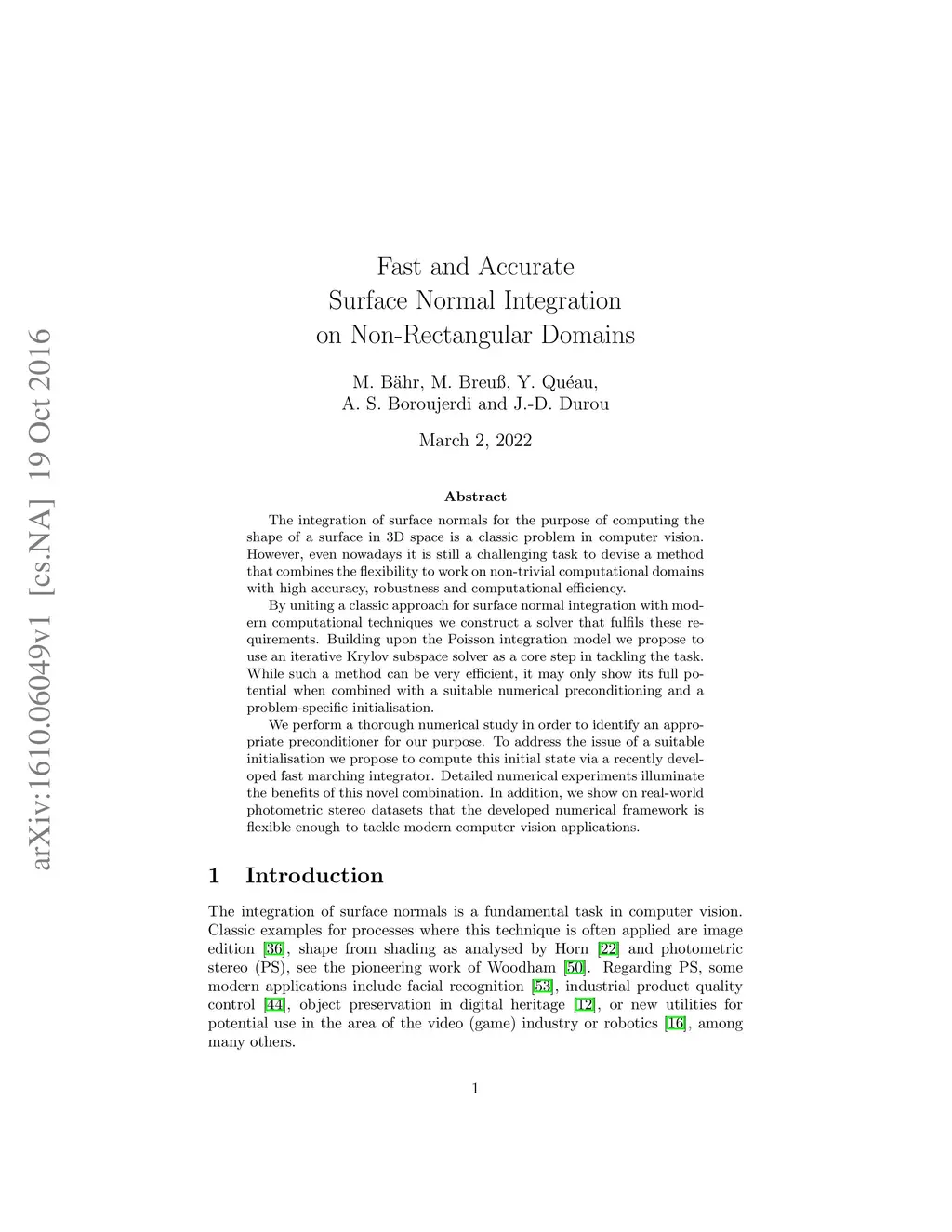 Fast and Accurate Surface Normal Integration on Non-Rectangular Domains