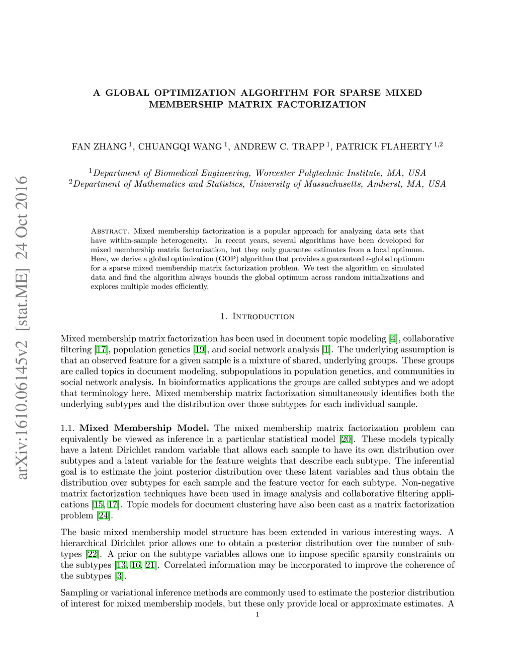 A global optimization algorithm for sparse mixed membership matrix