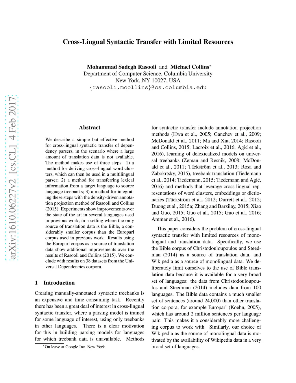 Cross-Lingual Syntactic Transfer with Limited Resources