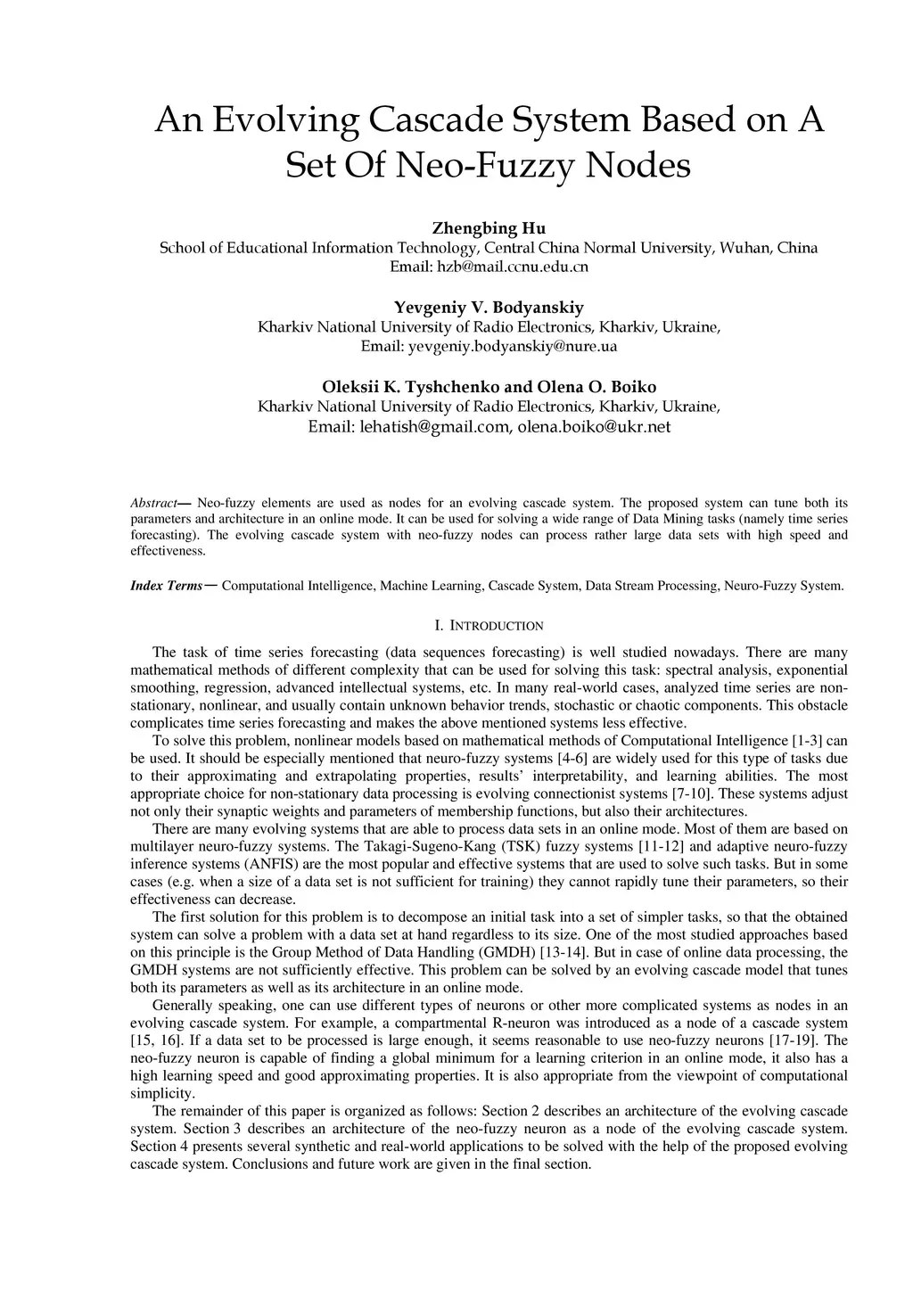 An Evolving Cascade System Based on A Set Of Neo Fuzzy Nodes