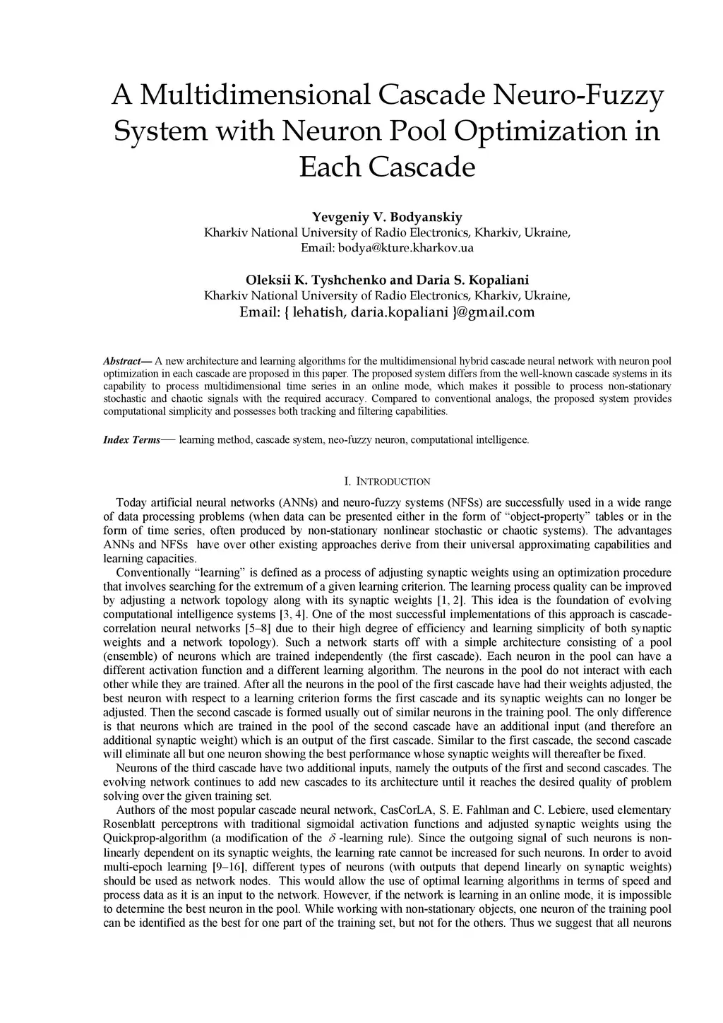 A Multidimensional Cascade Neuro-Fuzzy System with Neuron Pool