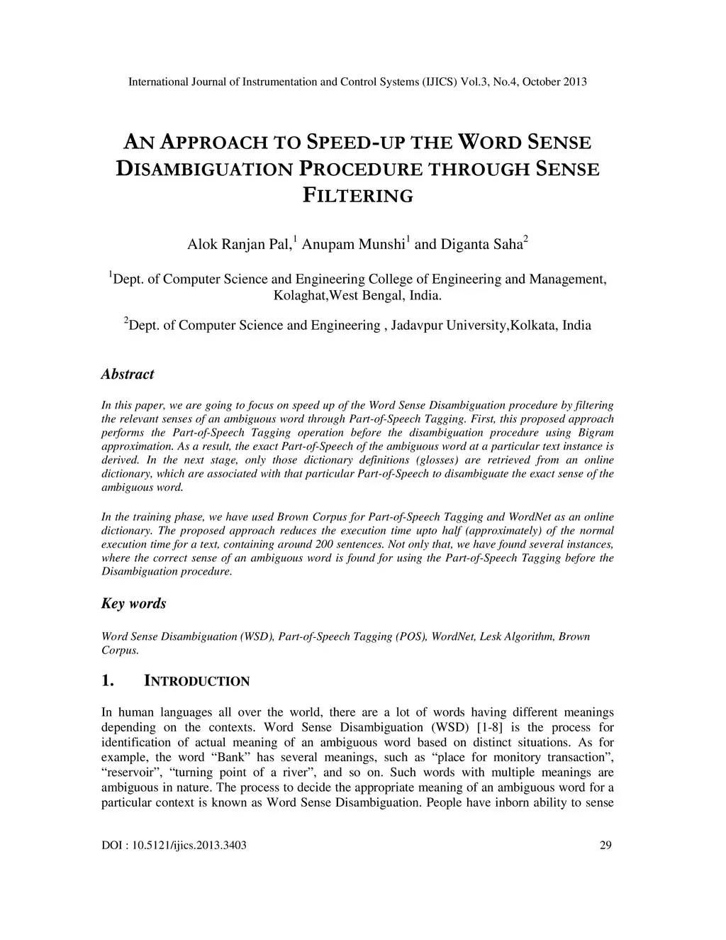 An Approach to Speed-up the Word Sense Disambiguation Procedure through