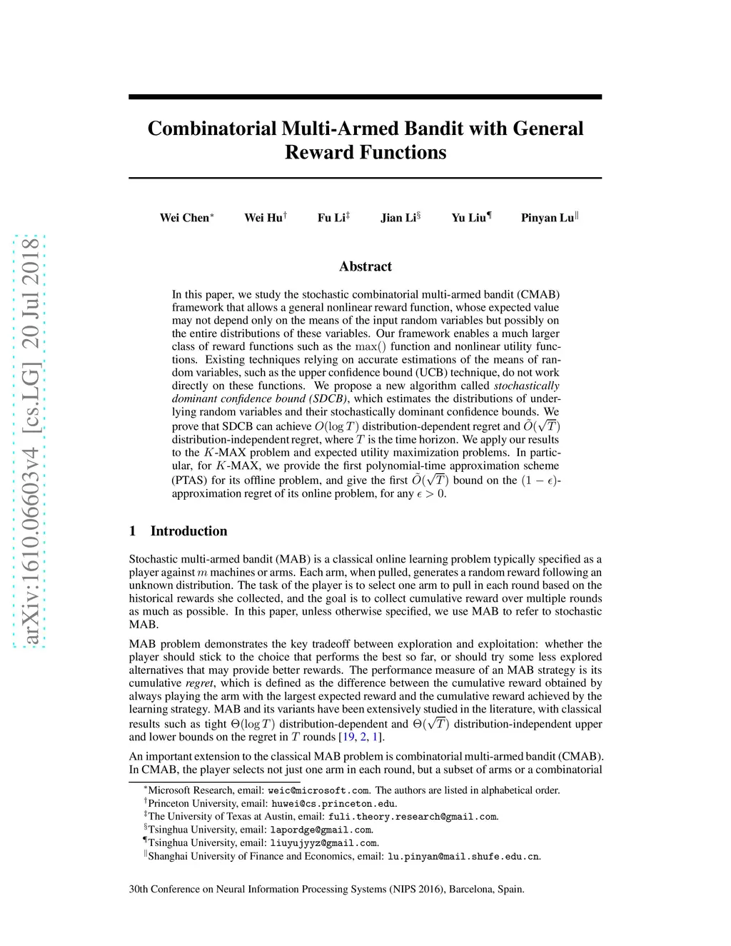 Combinatorial Multi-Armed Bandit with General Reward Functions