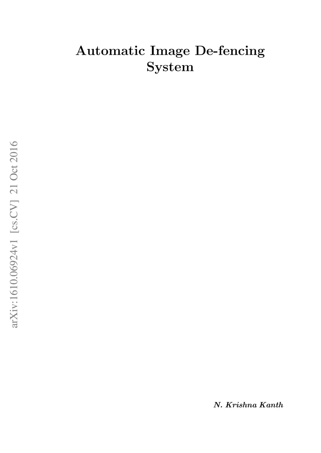 Tourists and Wild-life photographers are often hindered in capturing their cherished images or videos by a fence that limits accessibility to the scene of interest. The situation has been exacerbated by growing concerns of security at public places and a need exists to provide a tool that can be used for post-processing such fenced videos to produce a de-fenced image. There are several challenges in this problem, we identify them as Robust detection of fence/occlusions and Estimating pixel motion of background scenes and Filling in the fence/occlusions by utilizing information in multiple frames of the input video. In this work, we aim to build an automatic post-processing tool that can efficiently rid the input video of occlusion artifacts like fences. Our work is distinguished by two major contributions. The first is the introduction of learning based technique to detect the fences patterns with complicated backgrounds. The second is the formulation of objective function and further minimization through loopy belief propagation to fill-in the fence pixels. We observe that grids of Histogram of oriented gradients descriptor using Support vector machines based classifier significantly outperforms detection accuracy of texels in a lattice. We present results of experiments using several real-world videos to demonstrate the effectiveness of the proposed fence detection and de-fencing algorithm.