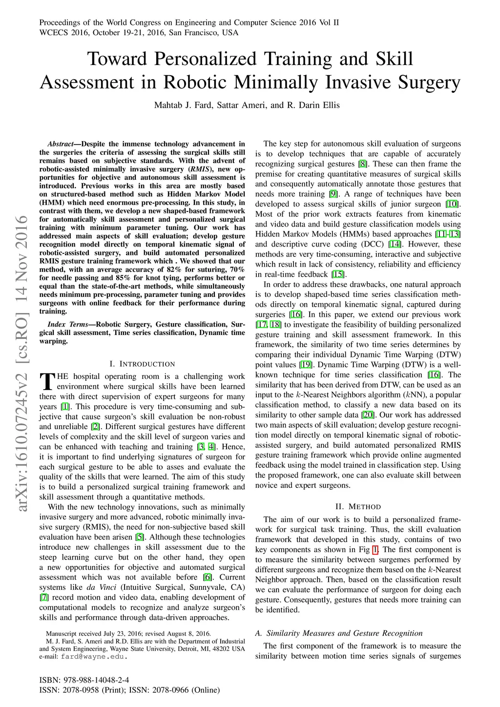 Despite the immense technology advancement in the surgeries the criteria of assessing the surgical skills still remains based on subjective standards. With the advent of robotic-assisted surgery, new opportunities for objective and autonomous skill assessment is introduced. Previous works in this area are mostly based on structured-based method such as Hidden Markov Model (HMM) which need enormous pre-processing. In this study, in contrast with them, we develop a new shaped-based framework for automatically skill assessment and personalized surgical training with minimum parameter tuning. Our work has addressed main aspects of skill evaluation; develop gesture recognition model directly on temporal kinematic signal of robotic-assisted surgery, and build automated personalized RMIS gesture training framework which . We showed that our method, with an average accuracy of 82% for suturing, 70% for needle passing and 85% for knot tying, performs better or equal than the state-of-the-art methods, while simultaneously needs minimum pre-processing, parameter tuning and provides surgeons with online feedback for their performance during training.