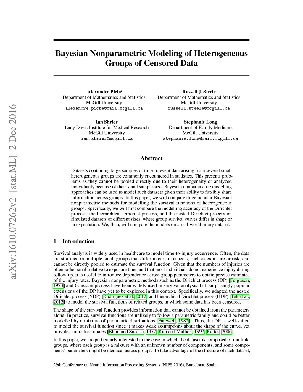 Datasets containing large samples of time-to-event data arising from several small heterogeneous groups are commonly encountered in statistics. This presents problems as they cannot be pooled directly due to their heterogeneity or analyzed individually because of their small sample size. Bayesian nonparametric modelling approaches can be used to model such datasets given their ability to flexibly share information across groups. In this paper, we will compare three popular Bayesian nonparametric methods for modelling the survival functions of heterogeneous groups. Specifically, we will first compare the modelling accuracy of the Dirichlet process, the hierarchical Dirichlet process, and the nested Dirichlet process on simulated datasets of different sizes, where group survival curves differ in shape or in expectation. We, then, will compare the models on a real-world injury dataset.