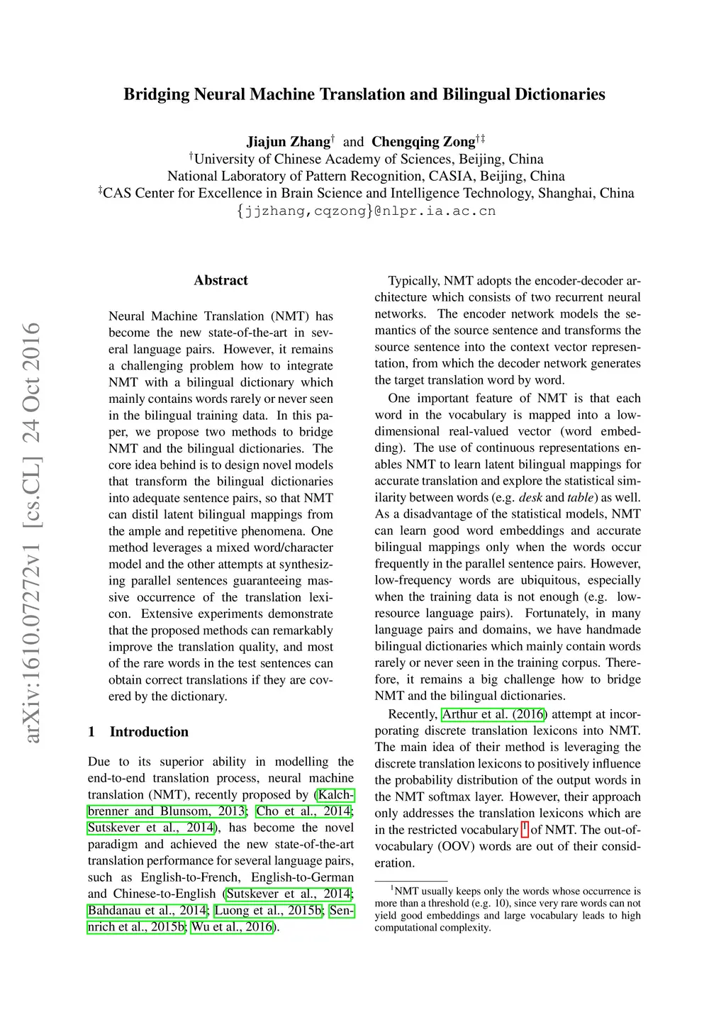 Bridging Neural Machine Translation and Bilingual Dictionaries
