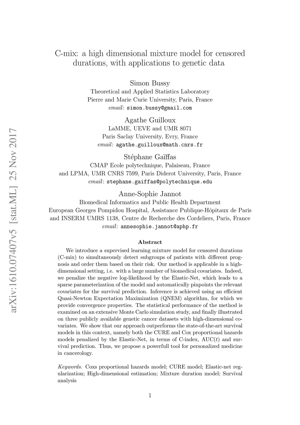 C-mix: a high dimensional mixture model for censored durations, with applications to genetic data