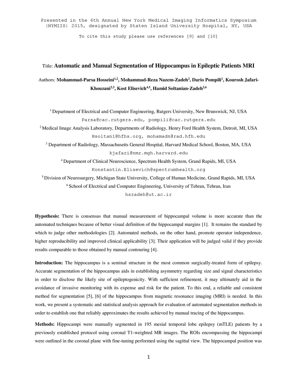 Automatic and Manual Segmentation of Hippocampus in Epileptic Patients