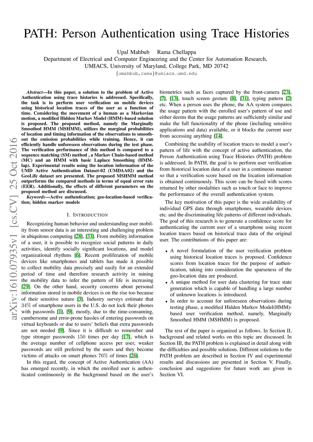 PATH: Person Authentication using Trace Histories