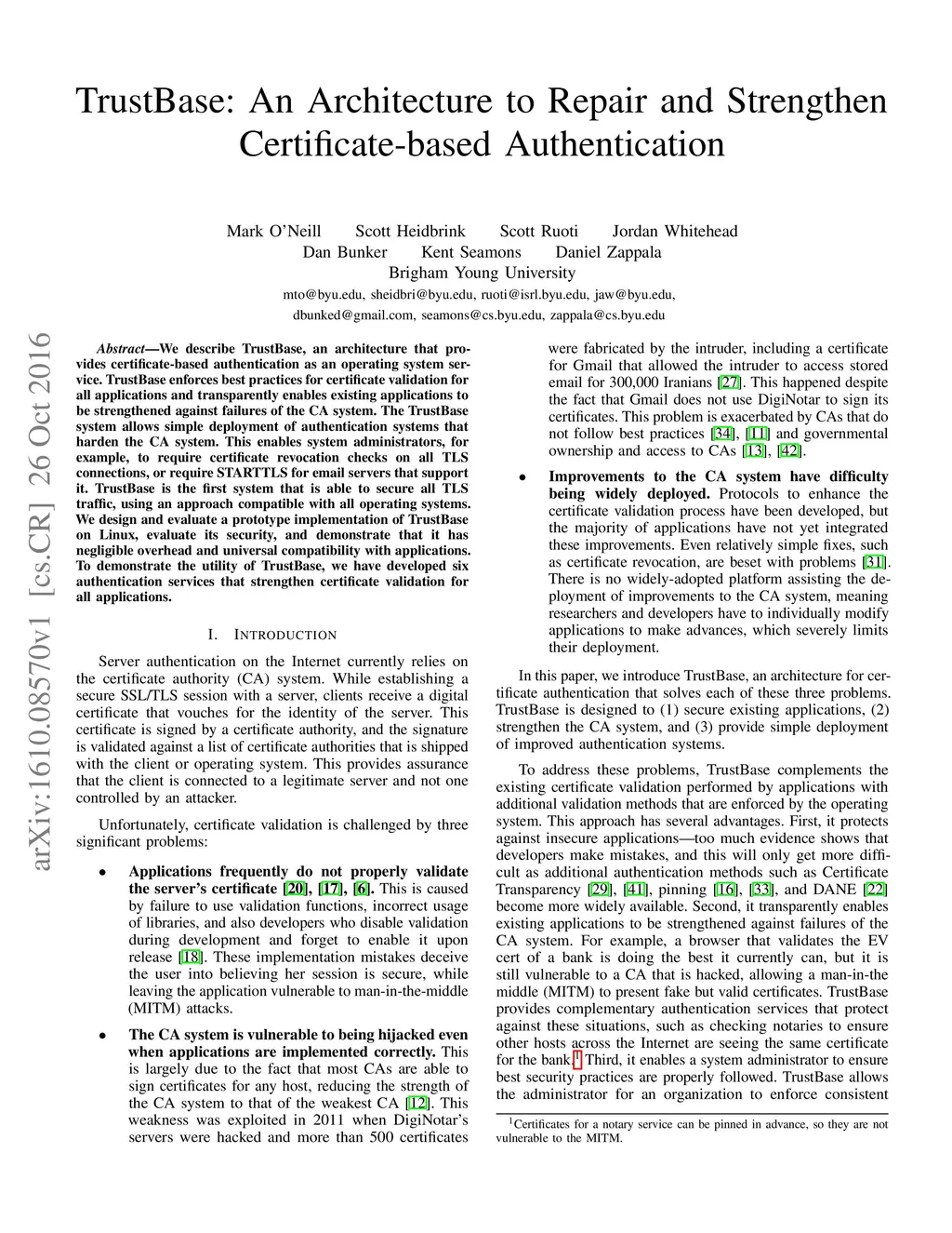 TrustBase: An Architecture to Repair and Strengthen Certificate-based