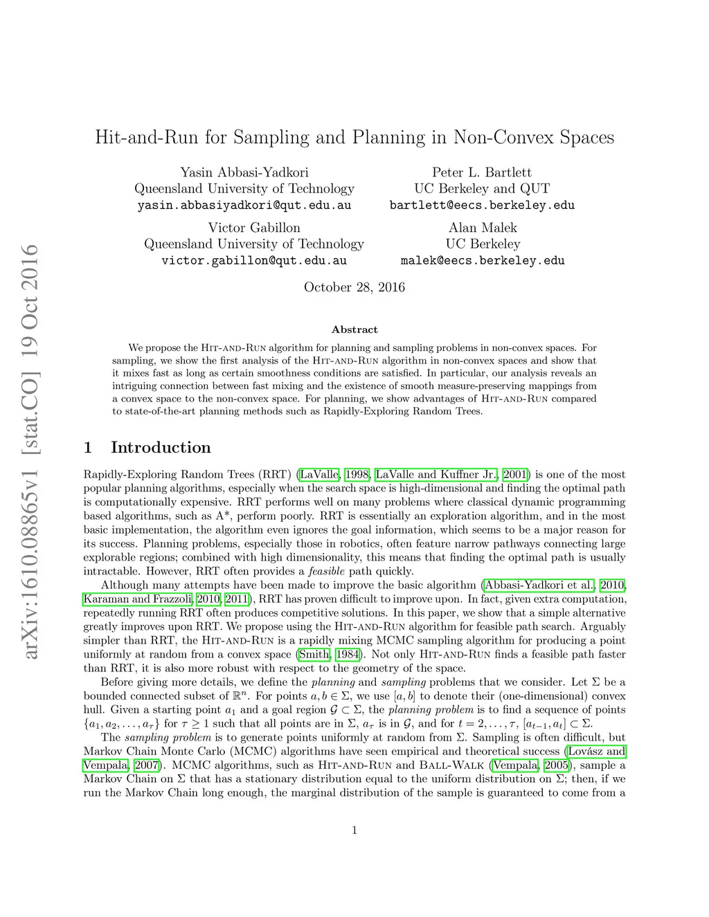 Hit-and-Run for Sampling and Planning in Non-Convex Spaces