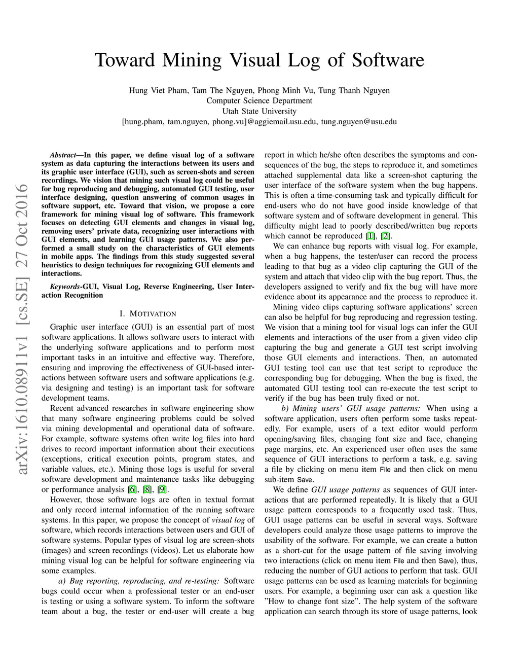 Toward Mining Visual Log of Software
