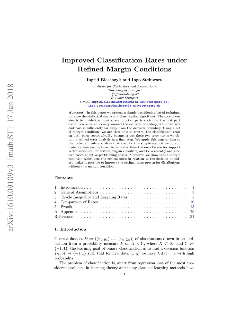 In this paper we present a simple partitioning based technique to refine the statistical analysis of classification algorithms. The core of our idea is to divide the input space into two parts such that the first part contains a suitable vicinity around the decision boundary, while the second part is sufficiently far away from the decision boundary. Using a set of margin conditions we are then able to control the classification error on both parts separately. By balancing out these two error terms we obtain a refined error analysis in a final step. We apply this general idea to the histogram rule and show that even for this simple method we obtain, under certain assumptions, better rates than the ones known for support vector machines, for certain plug-in classifiers, and for a recently analyzed tree based adaptive-partitioning ansatz. Moreover, we show that a margin condition which sets the critical noise in relation to the decision boundary makes it possible to improve the optimal rates proven for distributions without this margin condition.