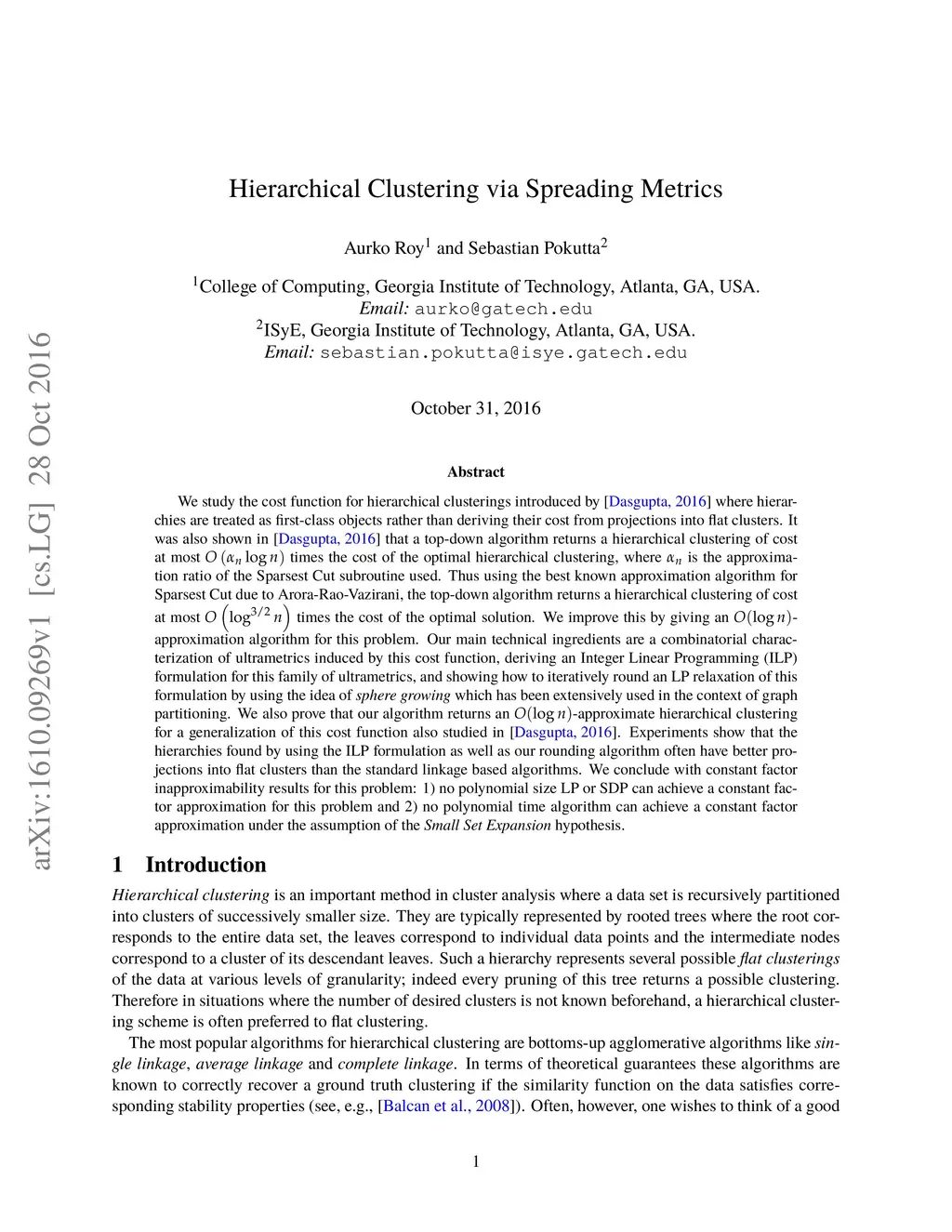 Hierarchical Clustering via Spreading Metrics