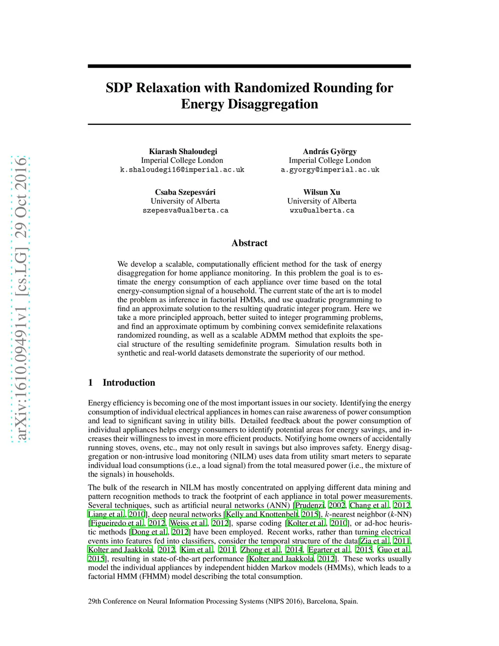 SDP Relaxation with Randomized Rounding for Energy Disaggregation