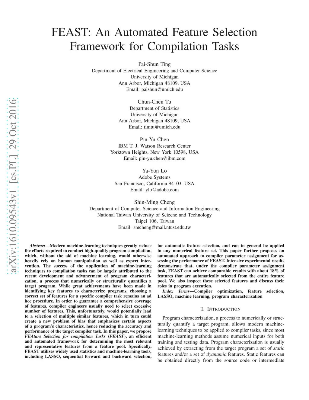 FEAST: An Automated Feature Selection Framework for Compilation Tasks