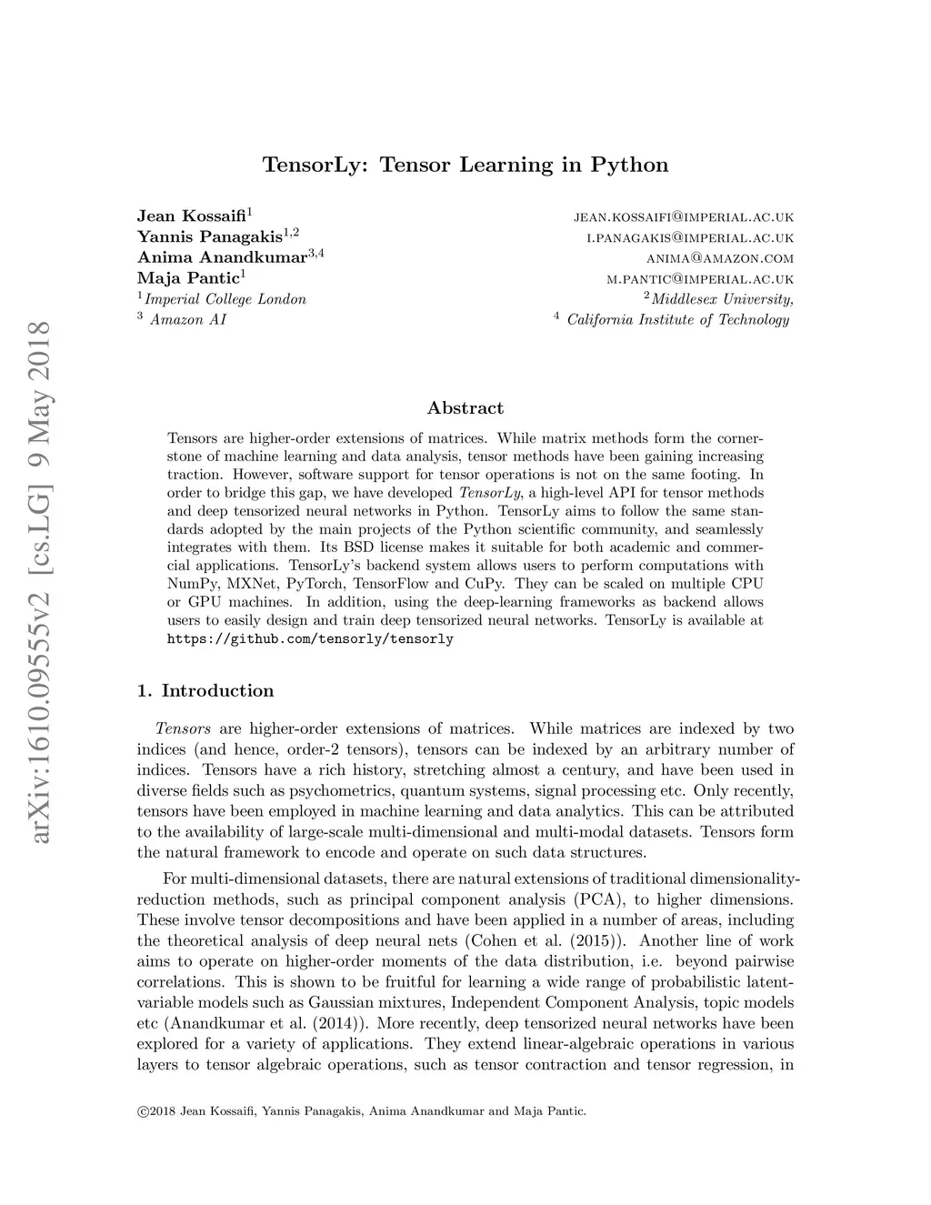 TensorLy: Tensor Learning in Python
