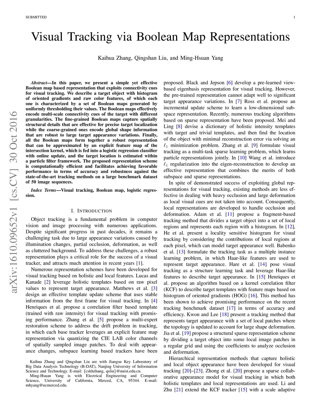 In this paper, we present a simple yet effective Boolean map based representation that exploits connectivity cues for visual tracking. We describe a target object with histogram of oriented gradients and raw color features, of which each one is characterized by a set of Boolean maps generated by uniformly thresholding their values. The Boolean maps effectively encode multi-scale connectivity cues of the target with different granularities. The fine-grained Boolean maps capture spatially structural details that are effective for precise target localization while the coarse-grained ones encode global shape information that are robust to large target appearance variations. Finally, all the Boolean maps form together a robust representation that can be approximated by an explicit feature map of the intersection kernel, which is fed into a logistic regression classifier with online update, and the target location is estimated within a particle filter framework. The proposed representation scheme is computationally efficient and facilitates achieving favorable performance in terms of accuracy and robustness against the state-of-the-art tracking methods on a large benchmark dataset of 50 image sequences.