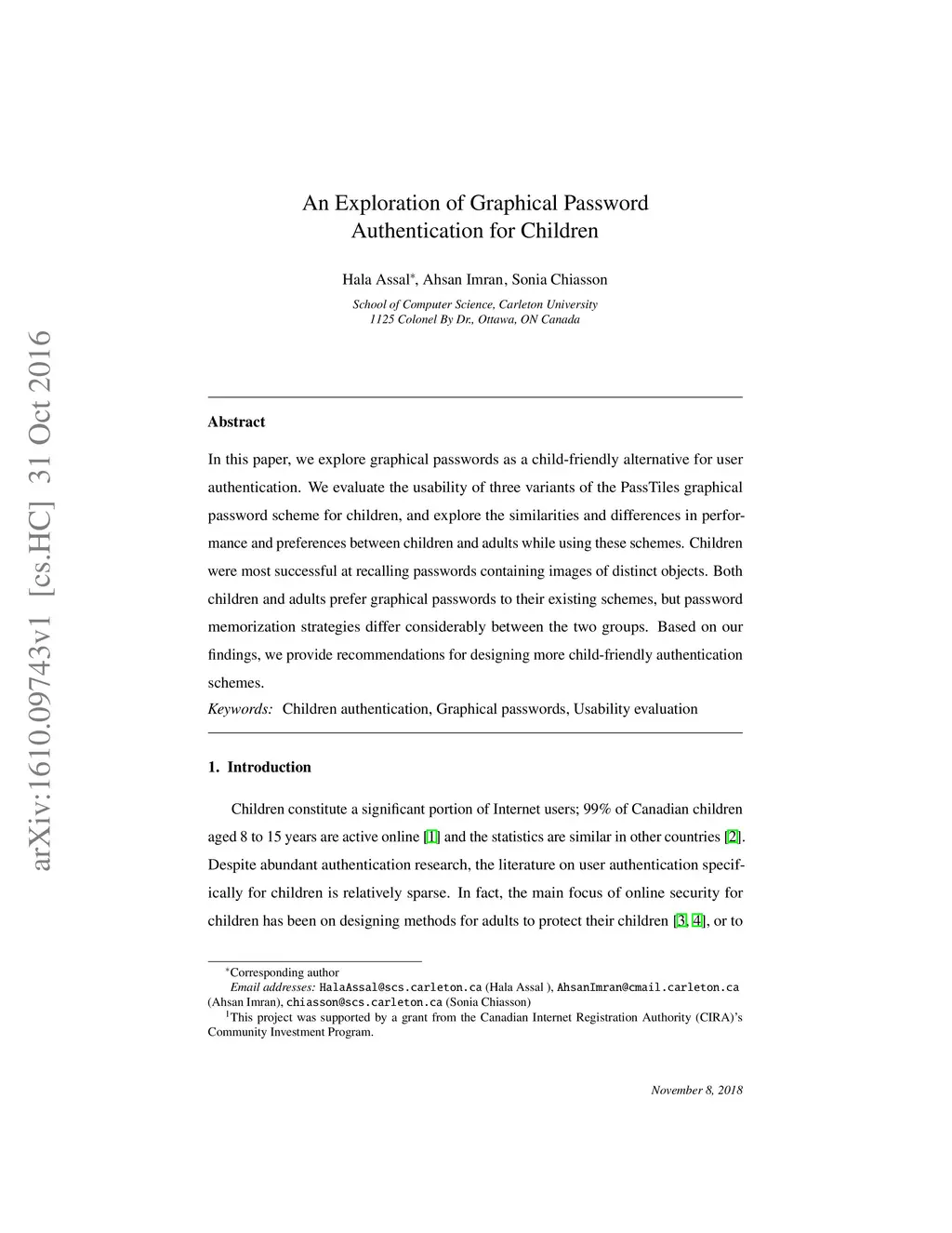 In this paper, we explore graphical passwords as a child-friendly alternative for user authentication. We evaluate the usability of three variants of the PassTiles graphical password scheme for children, and explore the similarities and differences in performance and preferences between children and adults while using these schemes. Children were most successful at recalling passwords containing images of distinct objects. Both children and adults prefer graphical passwords to their existing schemes, but password memorization strategies differ considerably between the two groups. Based on our findings, we provide recommendations for designing more child-friendly authentication schemes.