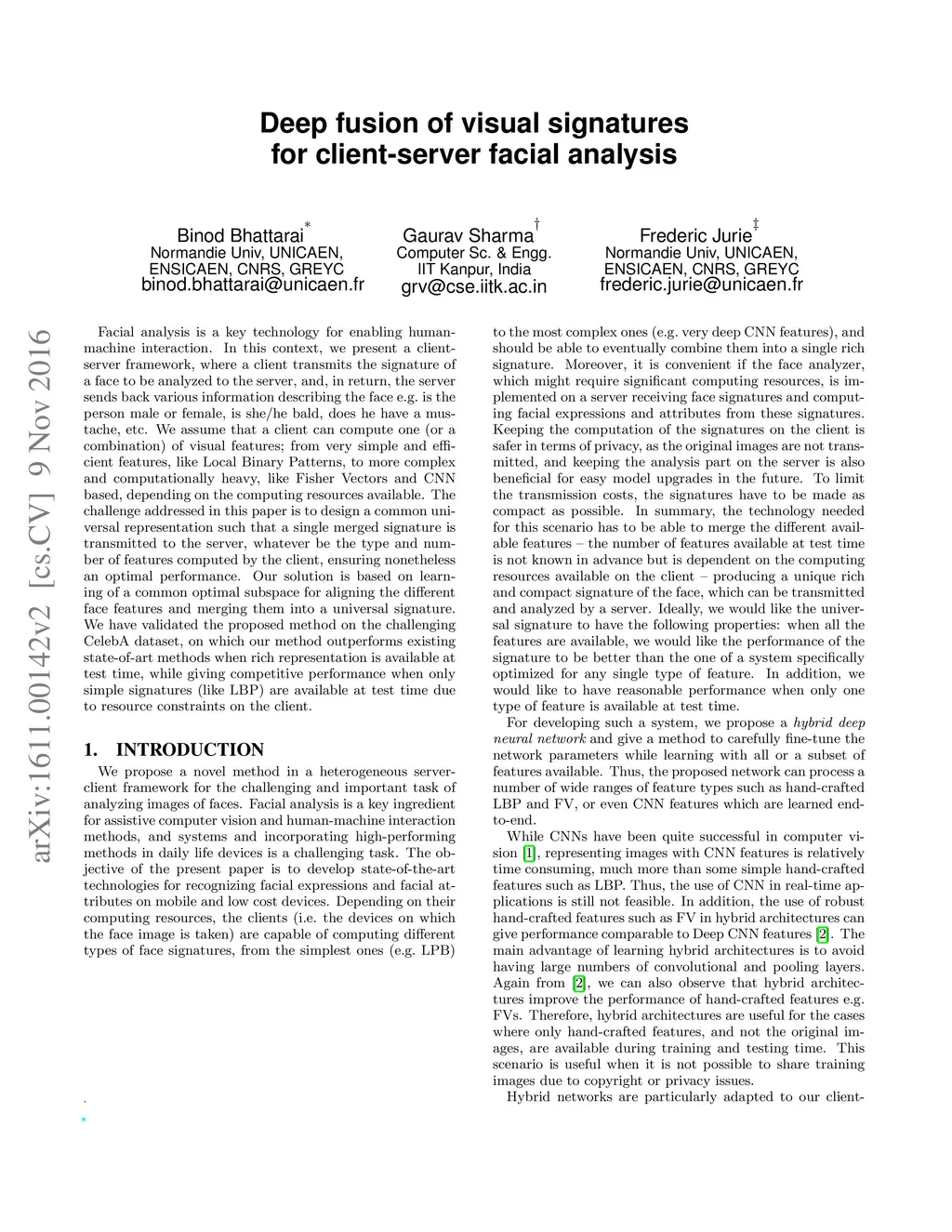 Deep fusion of visual signatures for client-server facial analysis