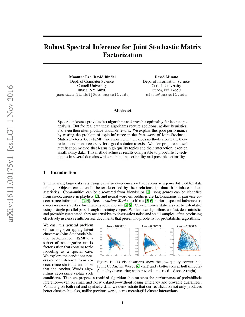 Robust Spectral Inference for Joint Stochastic Matrix Factorization