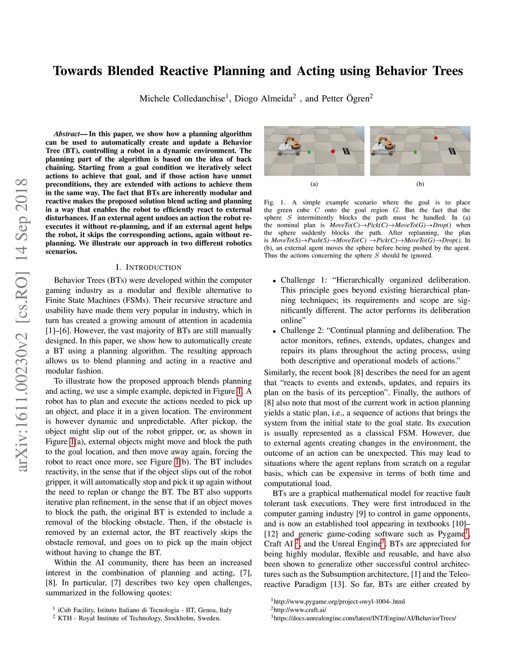 Towards Blended Reactive Planning and Acting using Behavior Trees